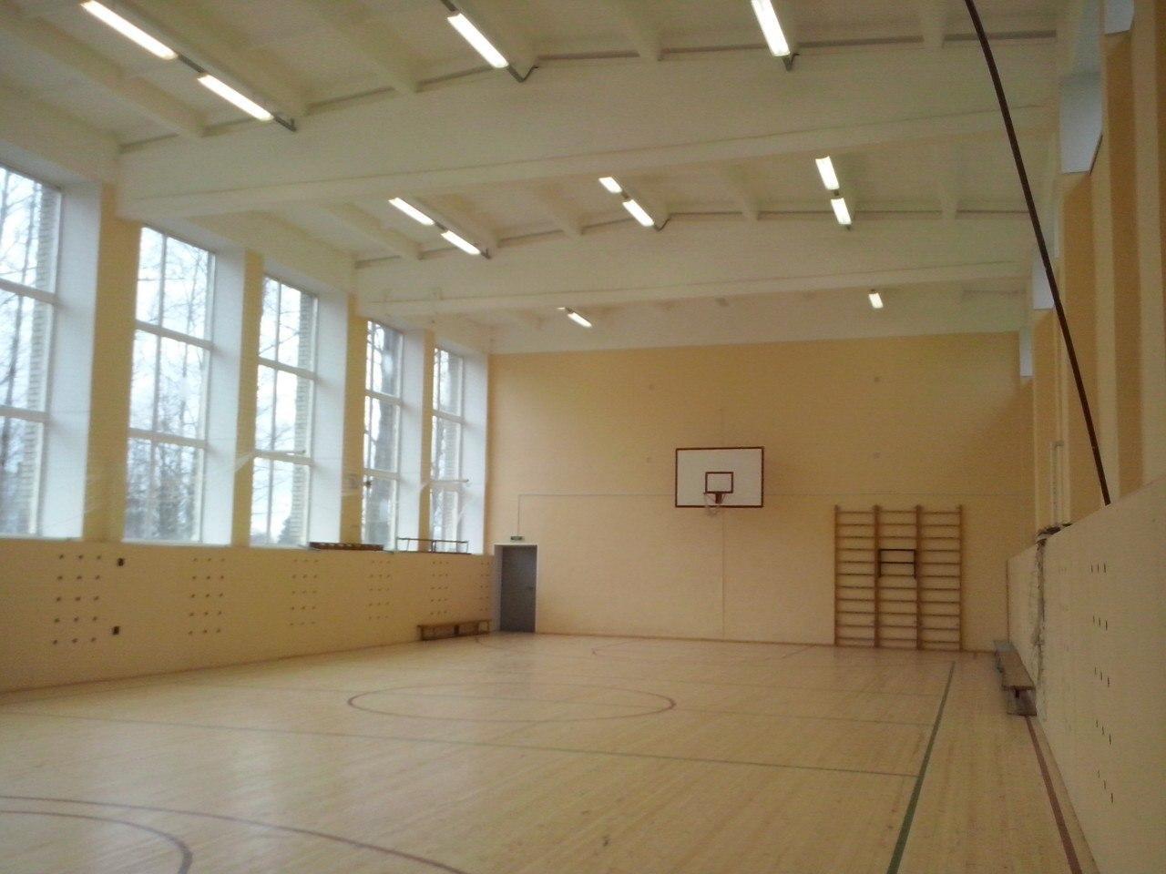 Спортивный зал площадью 285 м2 оснащен спортивным инвентарѐм. Имеется оборудование для гимнастики, шведские стенки, волейбольные сетки, баскетбольные кольца, различные мячи, скакалки, обручи, маты. Имеются уличные тренажеры.